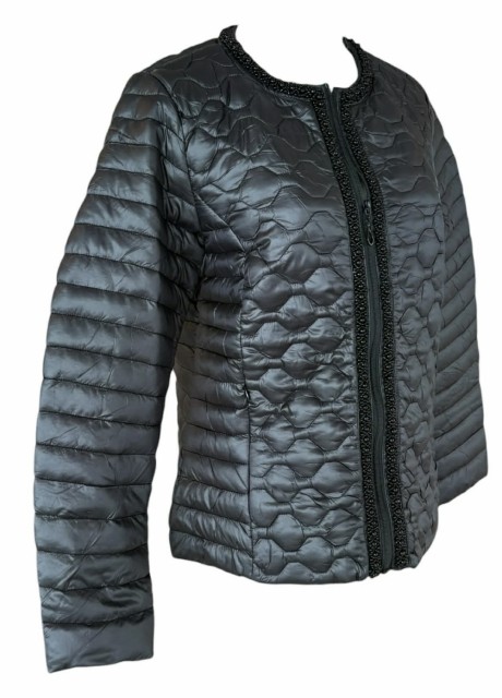 Vakre påsydde perler lang begge sider av glidelåsen i front.