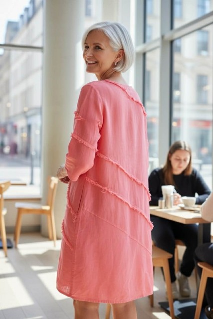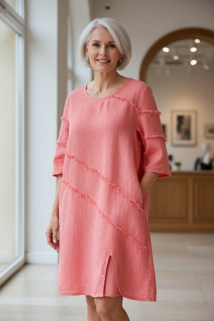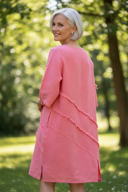Påsydde frynser på skrått (kun ment som en synseffekt) - både foran og bak og på ermene.