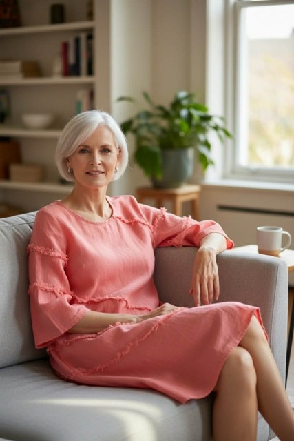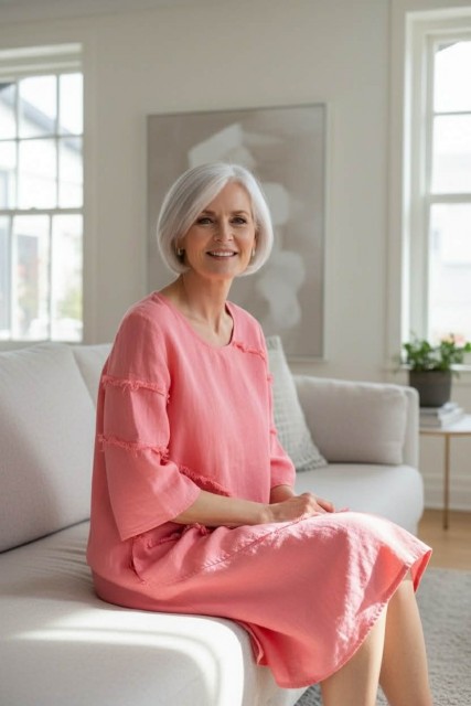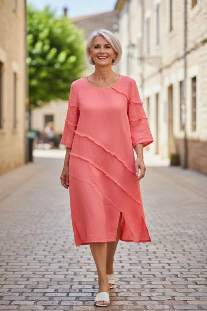 Kjolen måler 54 cm over brystet, målt fra rett under ermene og er 100 cm lang, målt fra skulder og ned.