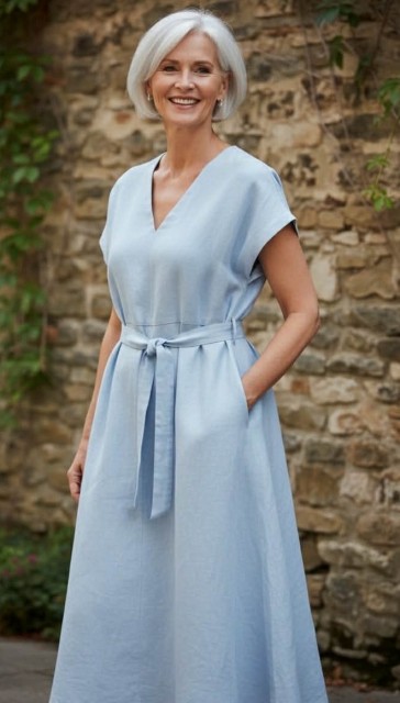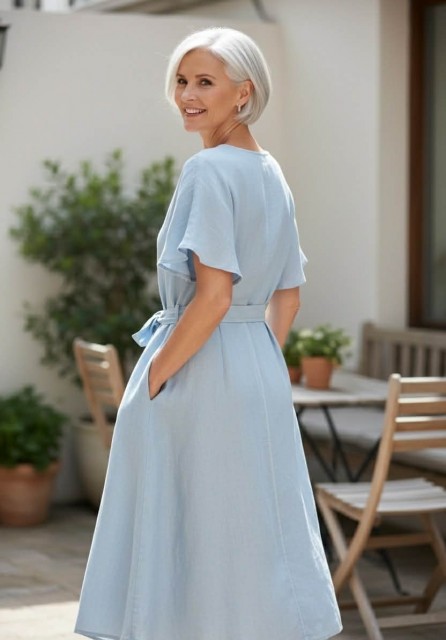 Lyseblå LINkjole m belte