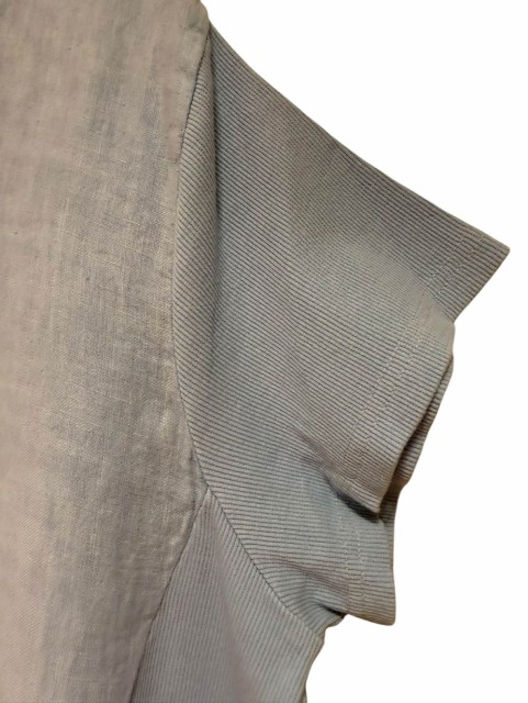 Ribbet kant i 100% stretch bomull i ermene og nedover til lommene.