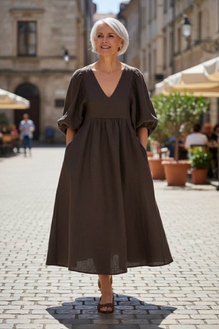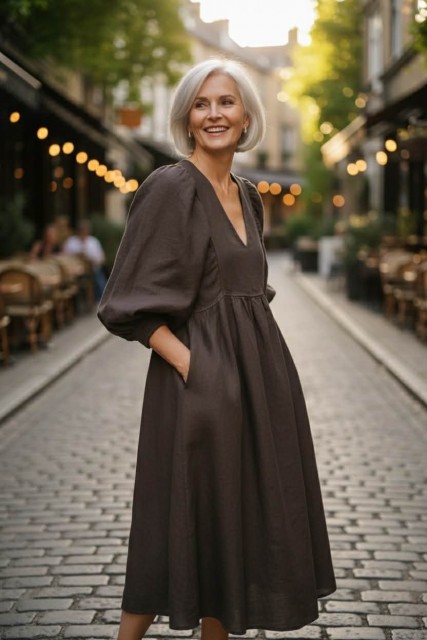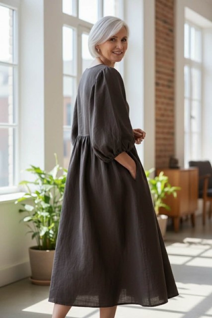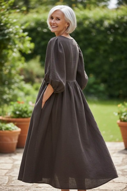 I midjen foran er det masse legg, mens det er strikk langs hele ryggen.