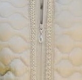 Vakre påsydde perler lang begge sider av glidelåsen i front.