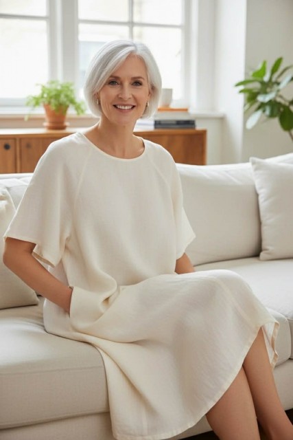 Str S/M: Hel lengde, målt fra skulder: 120 cm, bredde målt under ermene (brystet): 52 cm