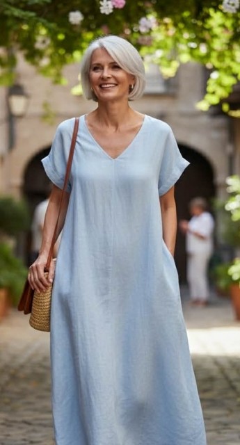 Delikat kjole i 100% lin.