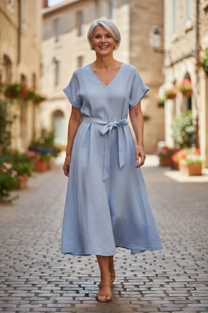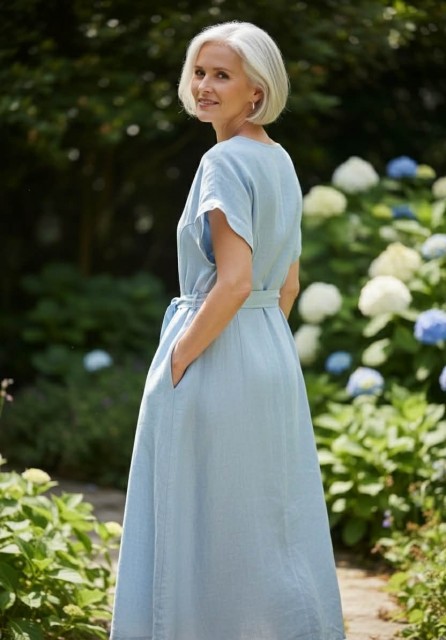 Lyseblå LINkjole m belte