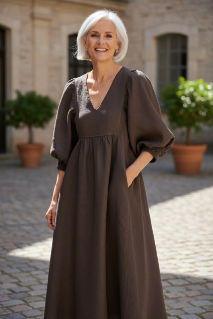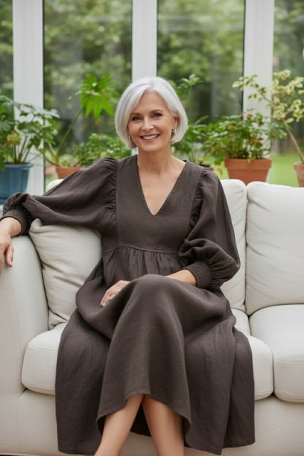 I midjen foran er det masse legg, mens det er strikk langs hele ryggen.