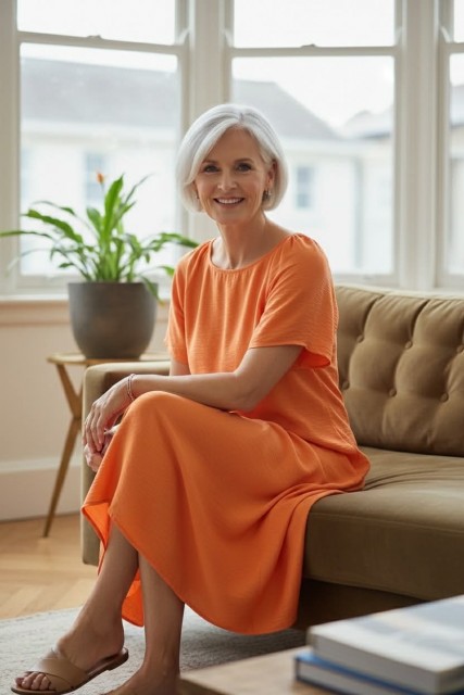 Orange rundhalset viskosekjole