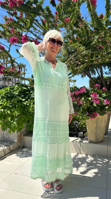Silkekjole m blonder- MINT