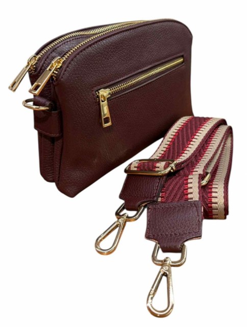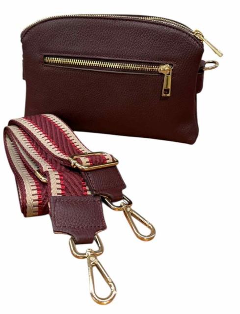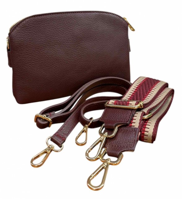 - Ekstra matchende regulerbar tekstilrem kantet med veskens skinn.